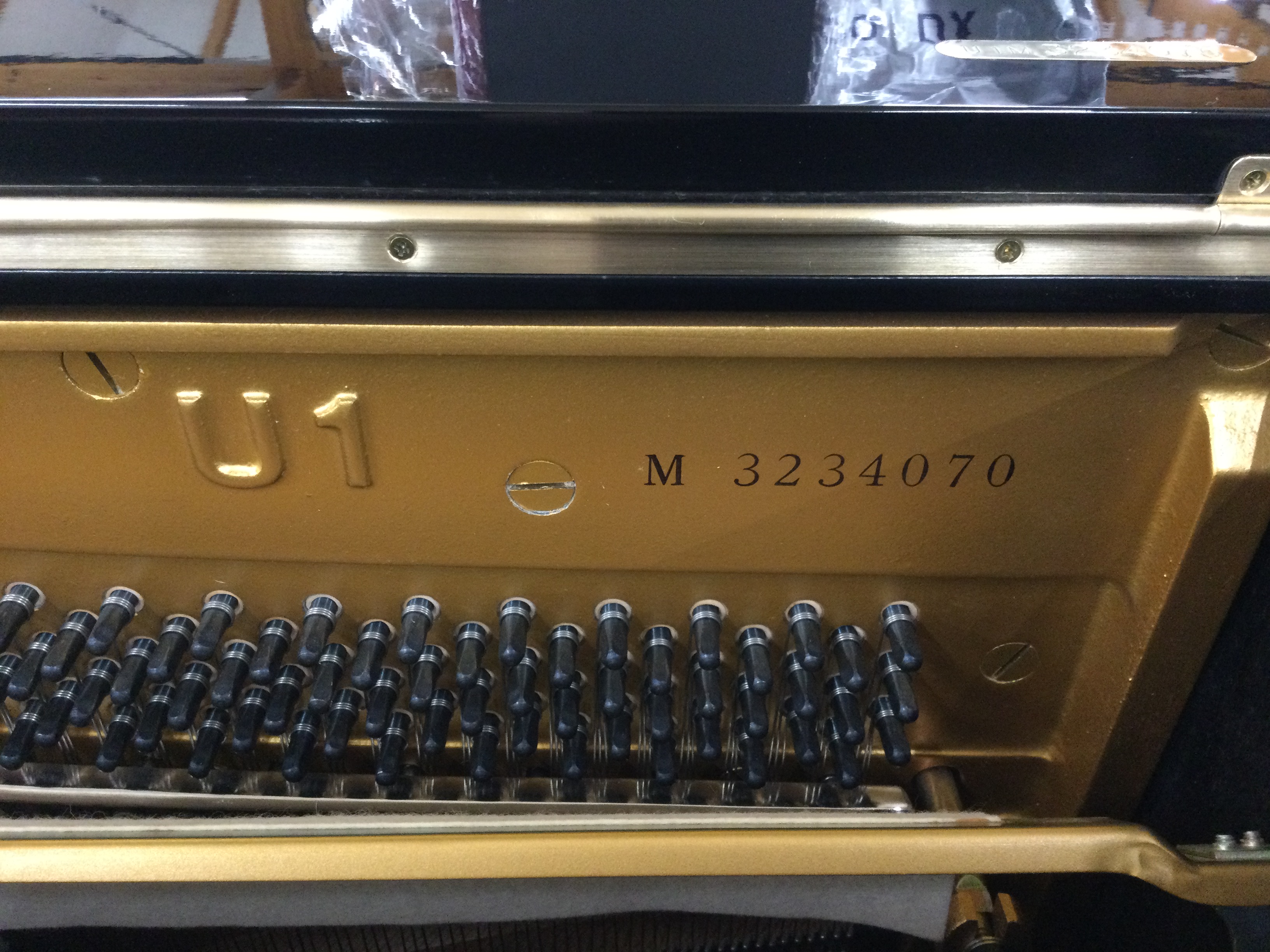 中古 〜50万円未満 ヤマハ U1M 製造番号:3234070 カラー/黒 背の高さが121cmのスタンダードモデルです。 背は低めですがセミアンダーフェルト採用のハンマーで、引き締まった音色と多彩な表現が楽しめます。 外装の研磨はしておりますが、傷が多めなので価格を少し下げております。 店頭にてお確かめください! 鍵盤 内部 型番
